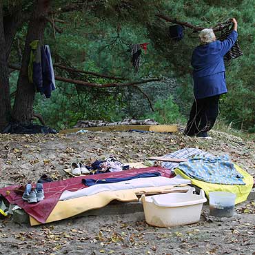 Takich osób mieszkających w lasach jest dużo więcej. Sprzedali mieszkania lub wyrzucono ich ze względu na chorobę alkocholową. Pracować nie chcą - balagan i brud zostawiają wszędzie. Dlaczego nie ściga ich prawo.