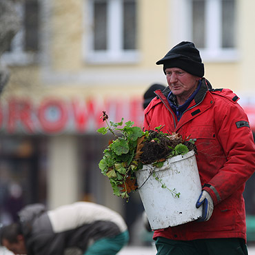 Na razie posadzą sztuczne kwiaty, bo 11 bm. jest święto i muszą być nowe kwiatki.