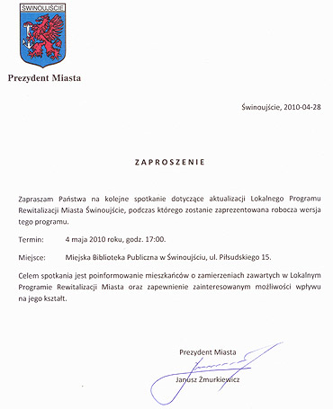 4 maja prezydent zaprezentował założenia do lokalnego programu rewitalizacji Świnoujścia. Jak mówią architekci, tylko ci mieszkańcy i firmy z naszego miasta, których projekty będą wpisane do programu rewitalizacji, będą mogli otrzymać dofinansowanie ze środków Unii Europejskiej. Tym samym proszą o rozwianie szeregu wątpliwości i publiczną odpowiedź na pytania dotyczące planu.