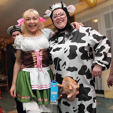 Pielęgniarki zdecydowały się na bal przebierańców. Widzimy więc i postacie z bajek i parę pszczół, piratów, diabełka a nawet przezabawną i śliczną krówkę.