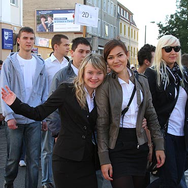 Uliczne pochody w dniu patrona szkoły to jedna z tradycji I L.O. W tym roku trzeba było jednak zmienić nieco trasę przemarszu. Powodem jest trwająca przebudowa centralnego układu komunikacyjnego miasta. Dlatego szkolna kolumna dotarła do centrum nie jak zwykle ulicą Konstytucji 3-go Maja, a ulicami Piastowską, Dąbrowskiego i Bema.