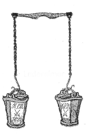 Skórzane wiadra stosowane do gaszenia pożarów, XVIII w. Rys. w zbiorze autora.(fot. Archiwum