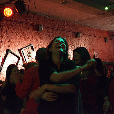 Takiego szaleństwa jeszcze podczas tegorocznej Famy nie było! Dochodziła pierwsza w nocy gdy przed estradę Jazz Clubu Scena trudno było się nawet wcisnąć. Ci tymczasem, którym się to udało, bawili się jakby ścisk im w ogóle nie przeszkadzał. A wszystko za sprawą wokalistek Aleksandry Nowak o Ani Karamon oraz prowadzącego Jerzego Jana Połońskiego.