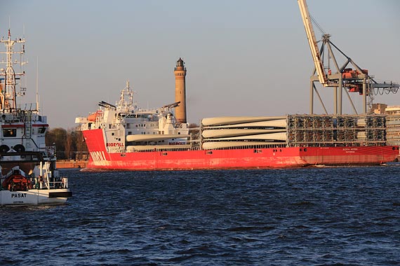Statek na zdjęciu to jednostka armatora armatora Big Roll Shipping, który zawija do świnoujskiego Euro - Terminalu. Obsługuje on odrębny kontrakt na cykliczne dostawy śmigieł dla farm elektrowni wiatrowych.