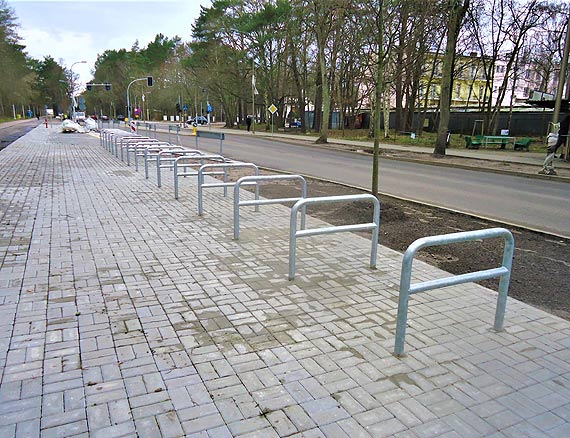 Przy plaży na Warszowie, przy kościele na Warszowie i przy przedszkolu na Warszowie. Przy SP 2 również można by było dołożyć trochę, gdyż n- le i uczniowie parkują rowerami, a nie każdy ma miejsce do przypięcia.