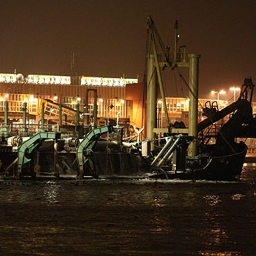 „Tonący statek" to nic innego, jak tylko pogłębiarka. Faktycznie zanurzona dość mocno w wodzie. Jednak nie tonąca.