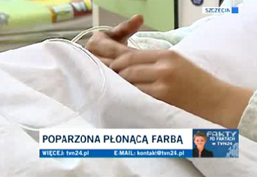 - Płonąca farba ochlapała i podpaliła nogi gimnazjalistki - donosi na skrzynkę Kontakt TVN24 internauta. Dziewczynka została przewieziona do szpitala. Ma poparzenia drugiego stopnia.