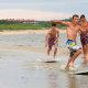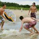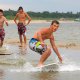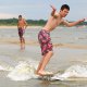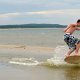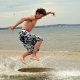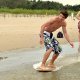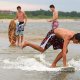 Grupa zapalonych ch³opaków uprawia w ¦winouj¶ciu skimboarding. ¦lizgaj± siê na p³ytkiej wodzie przy brzegu wykonuj±c wiele efektownych tricków. Skimboard jest jeszcze ma³o znany w Polsce. Uprawia siê go zazwyczaj nad morzem. Ale s± te¿ specjalne wybudowane do tego tory.