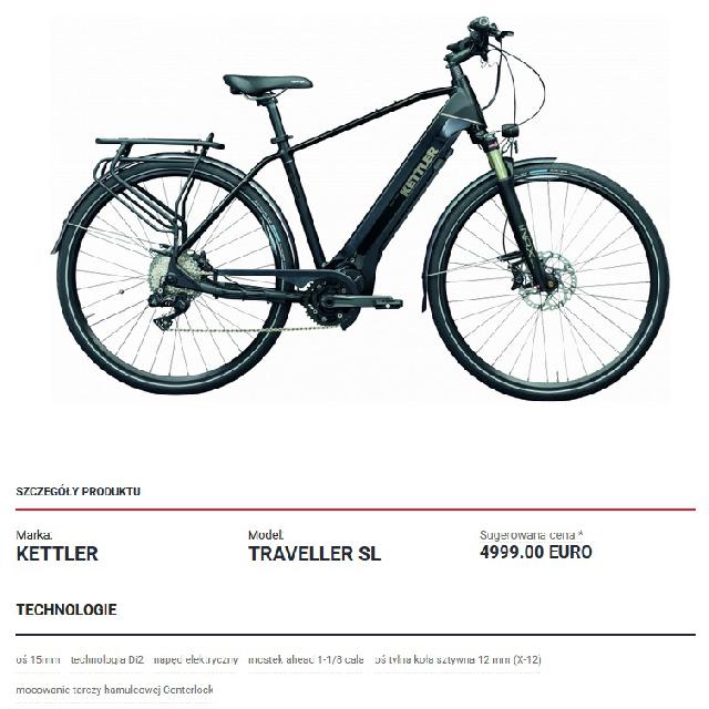 Sprzedam rower KETTLER Traveller SL – karbonowa rama, centralny silnik elektryczny, mocny napêd Shimano, elektroniczne przerzutki bez linek i hydrualiczne hamulce. Rower kupiony w cenie katalogowej 4999 euro.