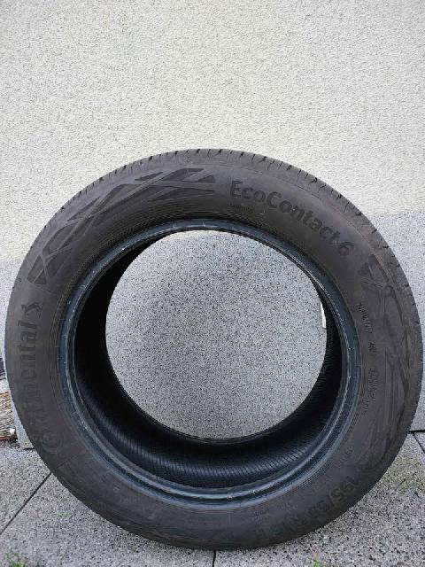 Sprzedam komplet opon letnich (4szt.) Continental EcoContact 6, 195/55 R16 H, produkcja grudzieñ 2024, u¿ywane 1 sezon (7200km) sprawne, nieuszkodzone. Cena 1100, do ma³ej negocjacji.