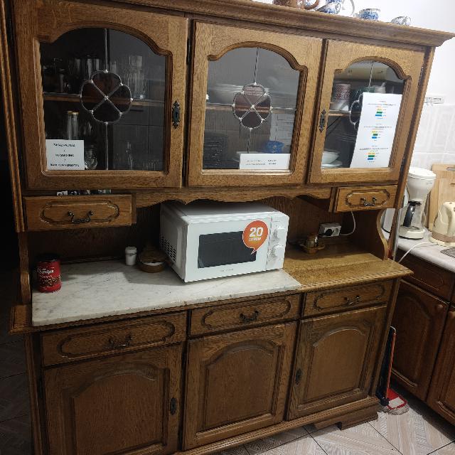 meble dêbowe: komoda o d³ugo¶ci 176 cm i wysoko¶ci 84 cm oraz ³awa rozk³adana o wysoko¶ci 62 cm, d³ugo¶ci 136 cm (177 cm po roz³o¿eniu) i szeroko¶ci 75 cm, z widocznymi ¶ladami u¿ytkowania na blacie stan dobry, odbiór i transport osobisty.