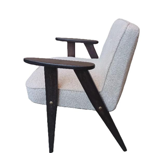 Sprzedam fotel z czasów PRL (Chierowski, 366). Fotel po renowacji: porêcze przeszlifowane, polakierowane, nowe obicie (jasny be¿, bookle), nowa pianka.