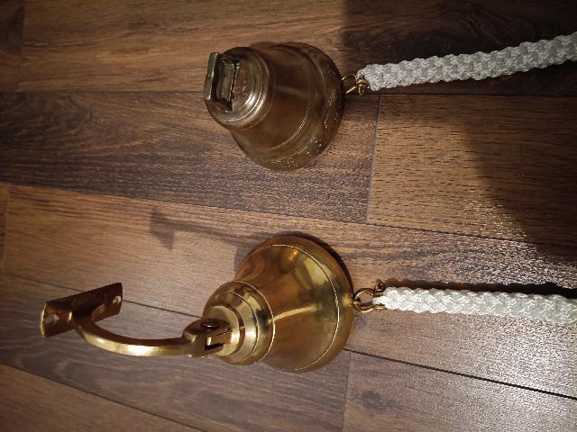 Sprzedam dwa mosiê¿ne dzwonki okrêtowe o wymiarach 10x10cm oraz 11x11cm. Cena za sztukê 70pln.