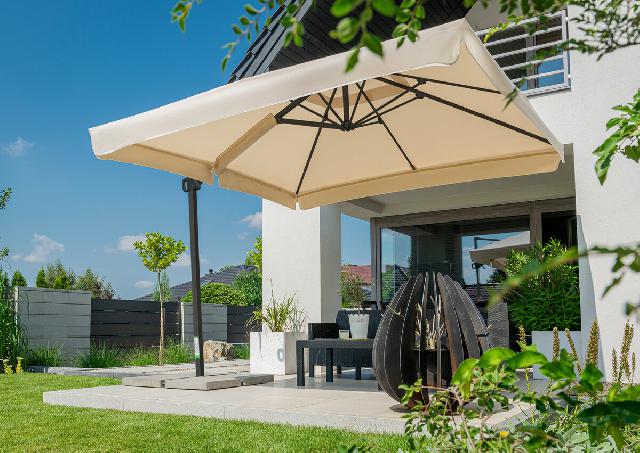 Sprzedam nowy parasol ogrodowo-tarasowy polskiej firmy Litex Garden Rio Plus 3. Parasol jest z podstaw± betonow± 171,5 kg, z pokrowcem i rotatorem nasady (dziêki któremu istnieje mo¿liwo¶æ zmiany pozycji parasola i obracanie go w zale¿no¶ci od potrzeb (np. przemieszczania siê s³oñca). Pokrycie jasny be¿ acryl