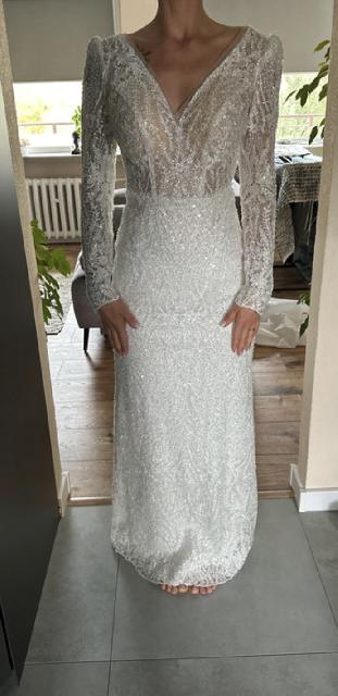 Piêkna Suknia ¶lubna z Salonu Madonna w Krakowie ,kolekcja Famosa , bogato zdobiona , piêknie l¶ni