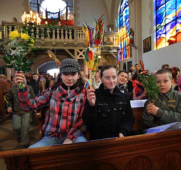 Na pamiątkę tamtych wydarzeń, tydzień przed Wielkanocą katolicy idą na specjalne nabożeństwa z kolorowymi palmami.Setki handlujących przed kościołami stara się tego dnia skutecznie zareklamować swój towar.