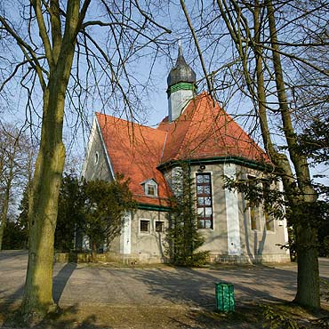Wejście główne na cmentarz komunalny przy ul. Karsiborskiej i kaplica cmentarna. (fot. Sławomir Ryfczyński
