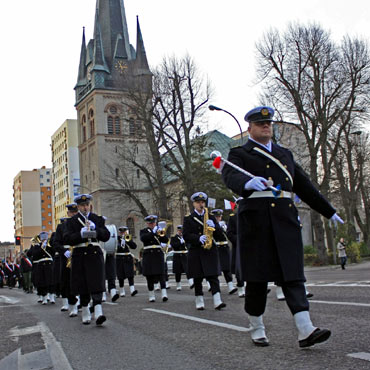 ¦winoujskie uroczysto¶ci rozpoczê³y siê msz± ¶w. w intencji Ojczyzny w ko¶ciele p.w. Chrystusa Króla z udzia³em kompanii honorowej 8 FOW i pocztów sztandarowych s³u¿b mundurowych oraz kó³ i stowarzyszeñ kombatanckich. Po mszy, na Placu S³owiañskim, pod pomnikiem „Bohaterom Walki o Niepodleg³o¶æ Rzeczpospolitej” odczytany zosta³ „Apel Pamiêci”.
