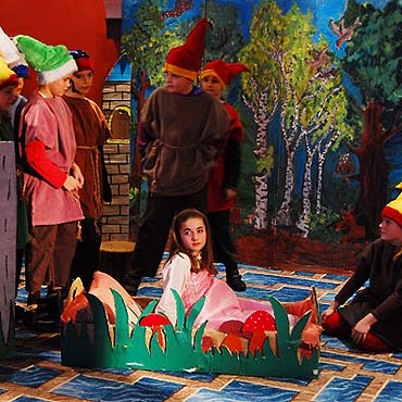 Najpierw o godzinie 14-tej, młodsza grupa świnoujskich początkujących aktorów, z klas czwartych i piątych zaprezentowała przestawienie według baśni braci Grimm - "Królewna Śnieżka".