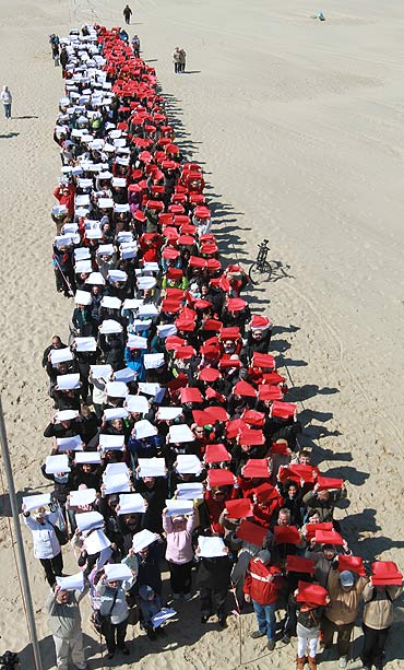 Zimny wiatr nie przeszkodził w pobijaniu rekordu na najdłuższą flagę narodową. W happeningu na plaży wzięło udział blisko 500 osób. Mieszkańcy i goście z białych i czerwonych kartek utworzyli prawie 100-metrową flagę.