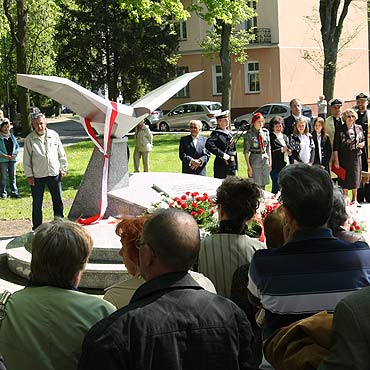 „Bóg Honor Ojczyzna. W 65 rocznicę wyzwolenia Polski. Bohaterom Walk o Wolność i niepodległość” – napis na cokole i mieniąca się w słońcu sylwetka Orła – symbolu, który towarzyszył narodowowyzwoleńczym zrywom Polaków i towarzyszy nam także dziś – w wolnej i niepodległej Rzeczpospolitej. Tak wygląda nowy pomnik, który stanął u zbiegu ulic Krzywoustego, Paderewskiego i Wyszyńskiego. Plac, którego centralnym obiektem jest pomnik, zgodnie z wcześniejszą decyzją radnych nosi również imię Orła Białego. W piątek 6 maja o godz. 14.00 przy dźwiękach narodowego hymnu w wykonaniu orkiestry 8 Flotylli Obrony Wybrzeża pomnik został uroczyście odsłonięty. W wydarzeniu wzięły udział władze samorządowe, kombatanci, młodzież i liczna grupa mieszkańców.