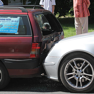 Za nim zatrzymała się taksówka. Samochodów stojących przed pasami nie zauważył kierowca mercedesa. Uderzył z impetem w tył taksówki. Wewnątrz pojazdu jechało 3 pasażerów i taksówkarz.