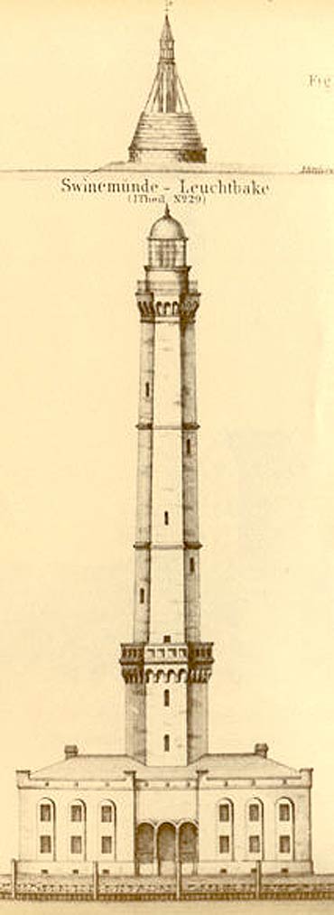 Ustawiony też został latarniowiec, noszący nazwę „Adlergrund” na Ławicy Orlej. O nich napiszę jeszcze odrębnym materiale. Modernizacji, nadal jednak wymagało samo podejście do Świnoujścia, które z racji licznych mielizn na Zatoce Pomorskiej, pozostawało niezbyt bezpieczne. Za konieczną uznano budowę odpowiednio wysokiej, o dużym zasięgu światła latarni morskiej. Ta, istniejąca z 1828 roku nie spełniała już swego zadania.