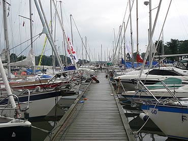 W piątek żeglarze rywalizowali na trasie najbardziej wyczerpującego wyścigu zawodów. Start do wyścigu długiego nastąpił już o godz. 9.00. Ostatnie jachty meldowały się na mecie dopiero po 20.00.Najpierw trzeba było postarać się o dobre miejsce w przystani. Nie jest to proste bo przy tej liczbie jachtów jednostki muszą cumować burta w burtę.