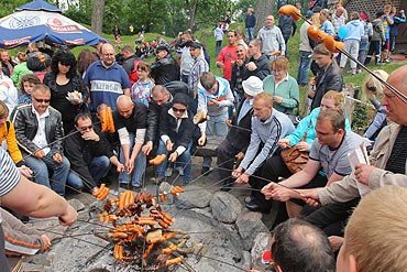 Na zmęczonych wieloma atrakcjami maluchów czekało ognisko i przepyszne kiełbaski. Stoliki i krzesełka były do dyspozycji dla każdego, kto chociaż przez chwilę chciał odsapnąć i nabrać sił na kolejny konkurs czy zabawę.
