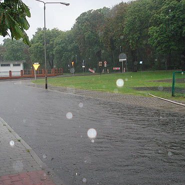Przytór-na wysokości cmentarza, ul.Sąsiedzka notorycznie zalany kawał ulicy, studzienki pozapychane, chyba nigdy nie były drożne.