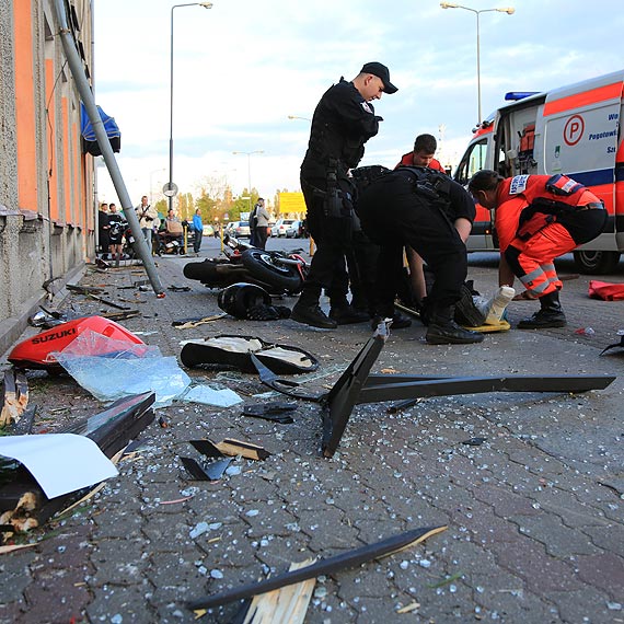 Motocykl wpadł do ogródka przy restauracji, nikomu z gości nic się nie stało, ale motocyklista ranny trafił do szpitala. Jego życiu nic nie grozi.