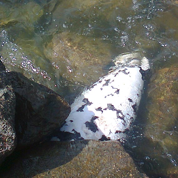 Martwa foka w jednym z kana³ów portowych w ¦winouj¶ciu. Ssaka, bez g³owy, zauwa¿y³ jeden z wêdkarzy ³owi±cy ryby w prawobrze¿nej czê¶ci miasta.