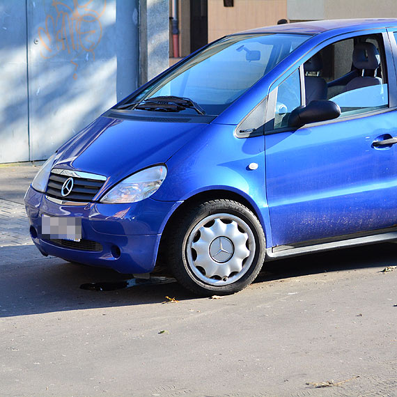 W czwartek ok. godziny 17.00 niebieski mercedes rozkraczył się na spowalniaczu przy ulicy Staszica. Kierująca autem prawdopodobnie za późno zauważyła próg zwalniający i z nadmierną prędkością wjechała na niego. Spowodowało to uszkodzenie przedniego zawieszenia, które zablokowało koło, tak, że nie można było ruszyć auta.
