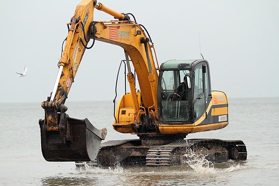 Niecodzienny widok ukazał się oczom spacerowiczów w poniedziałkowe popołudnie. Do Bałtyku wjechała koparka która zaczęła przygotowywać nabrzeże do położenia rurociągu.