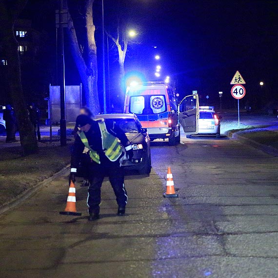 Mężczyzna przechodzący w niedozwolonym miejscu na ulicy Grunwaldzkiej został potrącony przez jadące w kierunku centrum audi. - To było straszne! Widziałem tylko buty i jakieś ciało w powietrzu! Po zatrzymaniu się zobaczyłem że to mężczyzna. Z nosa i głowy tryskała mu krew! - relacjonuje świadek zdarzenia jadący z naprzeciwka. Do potrącenia doszło na odcinku ulicy Grunwaldzkiej 47-48 w piątek po godzinie 20.00. Na miejsce zdarzenia przybyli ratownicy medyczni i policjanci. Potrącony mężczyzna został zabrany do szpitala. Odcinek ulicy Grunwaldzkiej na którym doszło do potracenia został zamknięty. Policjant kieruje samochody na ulicę Karsiborską.