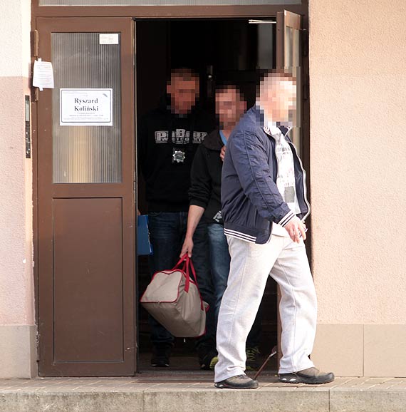Mężczyzna który miał uderzyć przez przypadek kolegę nożem, został zabrany przez policjantów na komendę.