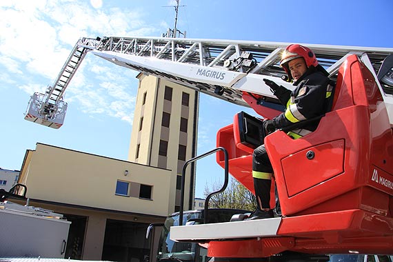 Jest nowa, zaawansowana technologicznie i bez problemu sięga nawet do najwyższego wieżowca! Mowa tu o nowej drabinie mechanicznej Iveco 180E32 z bardzo wysokiej klasy osprzętem, wprost od niemieckiej firmy Magirus! Drabina jest w pełni automatyczna, posiada gniazdo do działka wodnego o wydajności blisko 2500 litrów na minutę oraz miejsce na nosze ratownicze! Nowy Iveco to bez wątpienia sprzęt do zadań specjalnych! Zobacz nasze miasto z nowej, 42 metrowej drabiny!