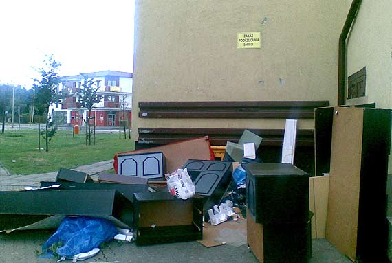 - Według mnie to nawet stwarza zagrożenie dla małego dziecka i nie tylko, bo może w każdej chwili coś spaść. Bardzo ładna wizytówka i reklama dla naszego miasta. Co najśmieszniejsze w tym, że u góry na ścianie budynku jest ładny napis...a jeszcze wyżej zainstalowana kamera. Natomiast w bloku jest powieszona kartka kiedy są wywożone gabaryty. - podsumowuje Czytelnik. Taki stan nie jest pojedynczym przypadkiem, bardzo często osiedlowe śmietniki kipią gabarytami, które są wyrzucane bezładnie i bezmyślnie - przecież wystarczy poczekać do terminu ich wywozu. Można chociaż ustawić je w jakimś porządku, a nie zarzucać starymi meblami całą okolicę.