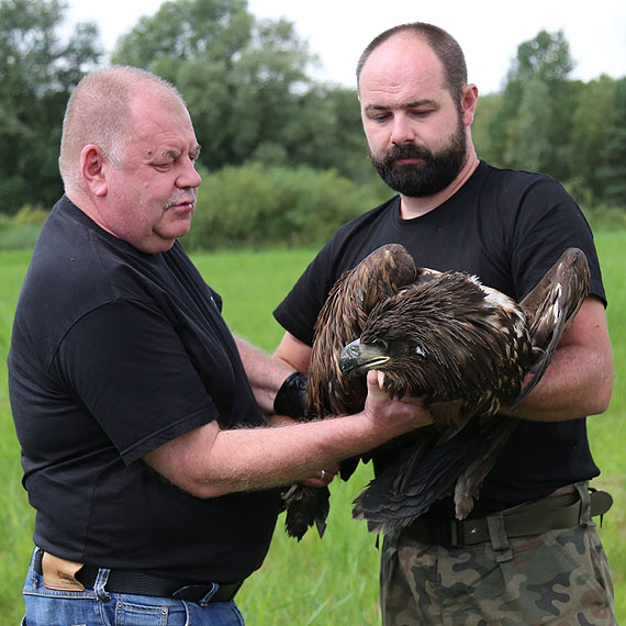 Ikar wypuszczony przez Michała Kudawskiego z Fundacji Dzika Ostoja ze Szczecina i Marka Czecha ze Świnoujścia. To Marek Czech pierwszy zauważył bielika w błocie po czym zawiadomił Krzysztofa Chomicza, bohatera który ze znajomymi uratowali bielika z błota.(fot. Sławomir Ryfczyński