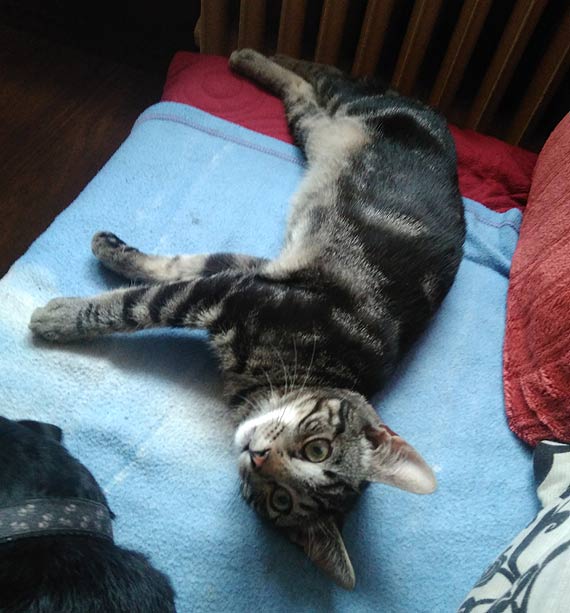 17.10.17r. około godziny 6:00 rano kot wypadł z 1. piętra przy ulicy Kościuszki 5/6. Jest szary w czarne pasy, szczupły, pod brodą ma biały pasek. Kotek ma 5 miesięcy, jest zaczepny, oswojony z innymi zwierzętami.