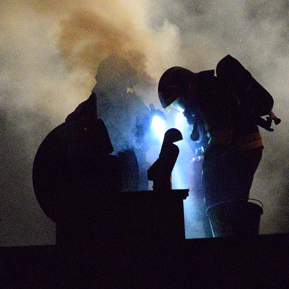 "We wtorek od godz. 19:30-20:16, Pożar (P), ul. Mazowiecka, Pożar sadzy w kominie. Działania PSP polegały na wygaszeniu paleniska w piecu centralnego ogrzewania, ugaszeniu pożaru w przewodzie kominowym poprzez podanie proszku gaśniczego.