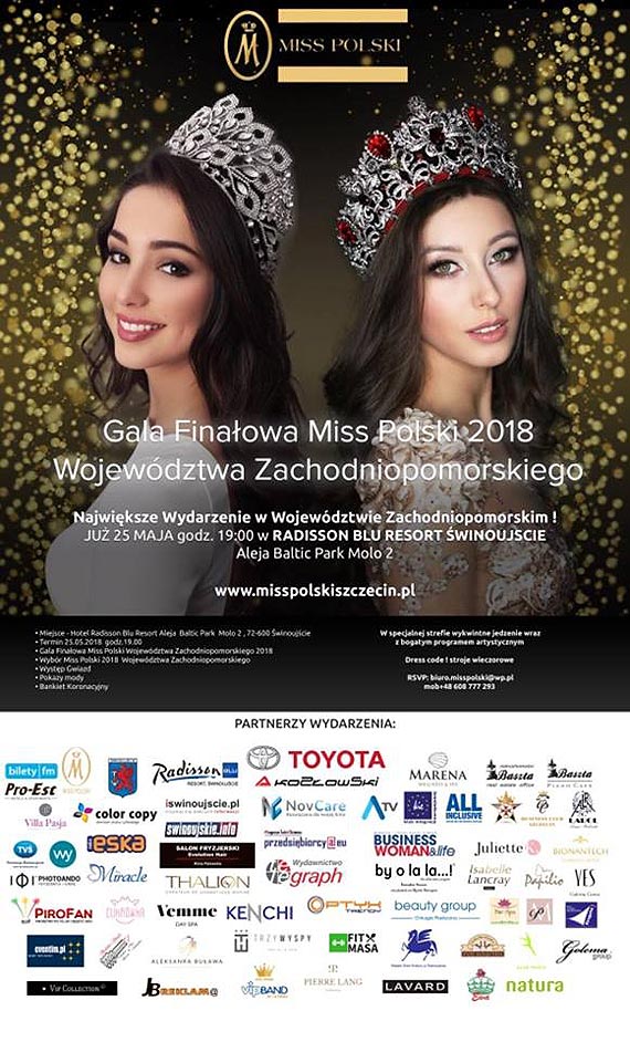 Konkursy piękności cieszą się niebywałym powodzeniem, co wynika choćby z faktu, iż kandydatek do korony „najpiękniejszej" z roku na rok przybywa. Jest to zapewne wypadkową tego, że kobiety stają obecnie się coraz pewniejsze siebie i swojej atrakcyjności, są niezależne i chętniej niż kiedyś sięgają po swoje marzenia. Głównym z rzeczonych marzeń jest dla tegorocznych finalistek Miss Polski Województwa Zachodniopomorskiego, jest wygrana podczas Wielkiej Gali Koronacyjnej, która odbędzie się już 25 maja w Hotelu Radisson Blu Resort w Świnoujściu.