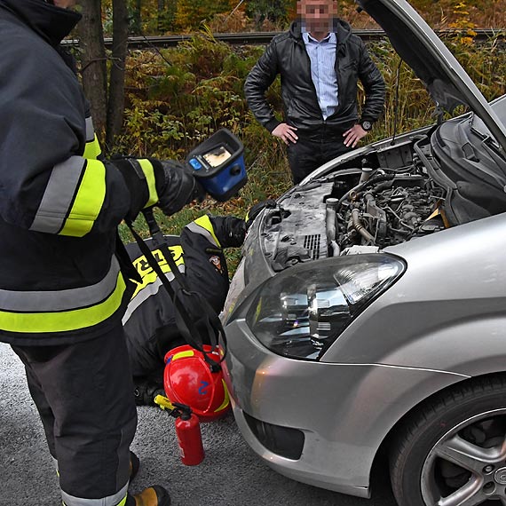 Spod maski samochodu zaczął się wydobywać gęsty dym. Kiedy się zatrzymał, samochód zaczął płonąć.