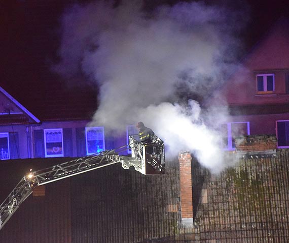 - Po przybyciu na miejsce strażacy polecili wygasić palenisko w piecu i zamknąć zasuwę przewodu kominowego. Następnie rozstawiono drabinę mechaniczną przy pomocy której ratownicy dostali się do szczytu komina i umieścili sito kominowe. Strażacy będący wewnątrz, poprzez wyczystkę na strychu podali proszek gaśniczy i ugasili pożar sadzy. Jednocześnie prowadzono oddymianie pomieszczeń poprzez ich przewietrzenie oraz wykonano pomiary miernikiem wielogazowym którego wskazania nie wykazały zagrożenia w powietrzu. Działania zakończono – informuje Marcin Kubas.