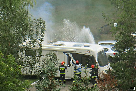 Dziś w godzinach przedpołudniowych na parkingu przy Urzędzie Miasta palił się kamper na norweskich tablicach rejestracyjnych.