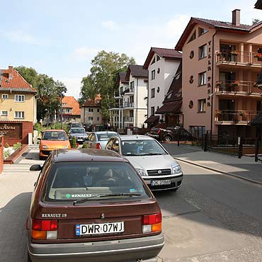 Przy ulicy jest wiele domków jednorodzinnych. Mieszkańcy stawiają tam swoje auta a także wskazują letnikom te miejsca na parkingi.