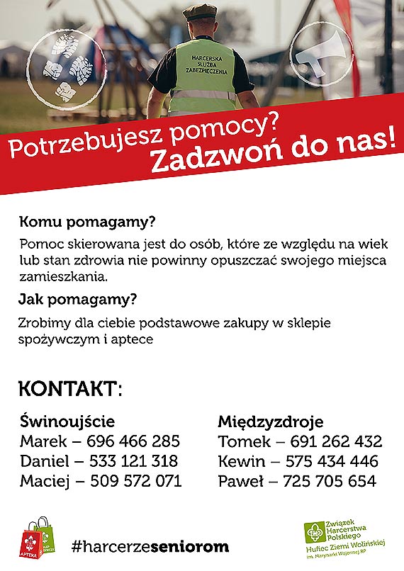 Pod takim właśnie hasłem, będącym częścią Przyrzeczenia Harcerskiego, wolontariusze z Hufca Ziemi Wolińskiej ZHP wspierają świnoujskich seniorów. Naszą akcję rozpoczęliśmy w dniu 19 marca br. czyli w czasie kiedy koronawirus zaczął się w naszym kraju intensywnie rozprzestrzeniać.