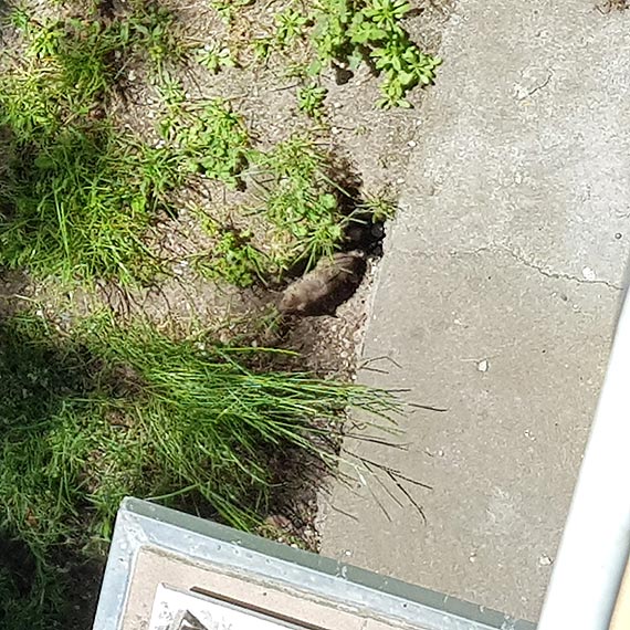 - Piszę w takiej sprawie, że przy bloku na ulicy Konstytucji (dokładnie pod balkonem od biblioteki miejskiej) norę zrobiły sobie szczury. Nie wiadomo czy wchodzą do piwnicy (przynajmniej mi nie wiadomo, bo odkąd odkryłam, że są tu szczury to tam nie schodzę). Sprawa zgłoszona do spółdzielni z samego rana w czwartek, tam pani zapewniła, że przyjdzie pan nasypać trutki i sprawdzić czy nie wchodzą do piwnicy. To jest centrum miasta, dosłownie kilka metrów dalej po chodniku chodzą ludzie. Jak wiadomo szczury mogą przenosić choroby i robić szkody np. w piwnicach i sprawa powinna być potraktowana priorytetowo. W załączniku wysyłam "dowody".