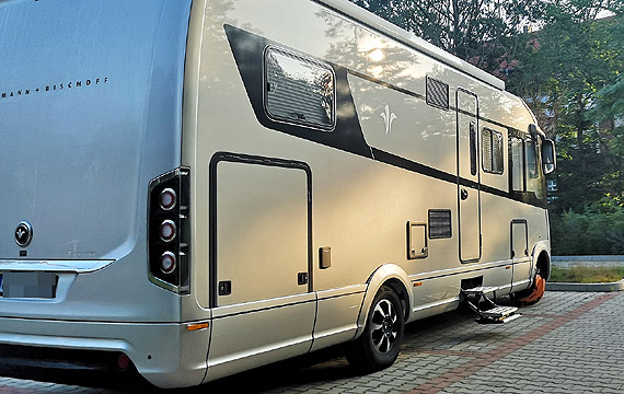 Czy tym razem oszczędny turysta zapłaci słono za parkowanie? Czy służby były czujne i unieruchomiły kampera zakładając mu blokadę na koło, czy sam sobie założył blokadę aby pokazać że już został ukarany?