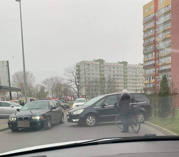 Samochód stał w poprzek drogi, która prowadzi do Kauflandu. Możliwe, że zjechał z parkingu, co wydaje się bardzo dziwne, bo przecież kierowca powinien zaciągnąć hamulec ręczny lub sprawdzić, gdzie i jak zostawia swój pojazd...